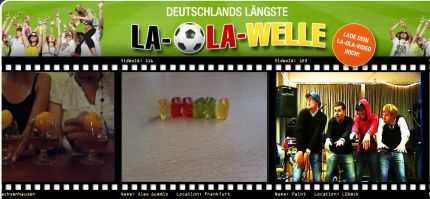 Hier entsteht die längste Laola-Welle der Welt, Dazu werden einfach einzelne Clips von Fußball-Fans hochgeladen, die gerade eine Laola-Welle machen. Diese Clips werden dann einfach aneinandergereiht, da sie sich beliebig kombinieren lassen. Jeder kann ein beliebiges Video hochladen und sich so in der Welle verewigen. Macht unheimlich viel Spaß zuzuschauen und ist echt eine tolle Idee, die das “Wir-Gefühl” noch mehr stärkt. Unbedingt anschauen und eventuell sogar mitmachen!