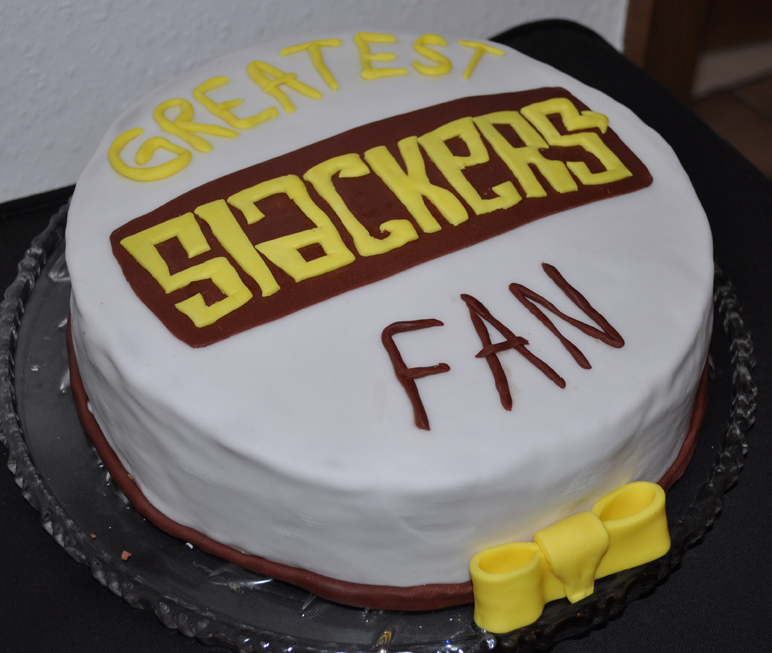Nach lange Pause habe ich mich mal wieder an die Tortenproduktion und Verzierung gewagt. Anlass hierzu war ein Geburtstag. The Slackers sind eine amerikanische Ska-Band aus New York, die ich mir im Mai auch erstmal live anschauen werde (hier Klicken für weitere Informationen). Eigentlich wollte ich das Logo der Band erst mit einer Schablone herstellen. Habe mich aber für die “Frei-Hand-Variante” mit dem Rollschneider entschieden, das ging deutlich leichter und schneller. Das Geburtstagskind schien jedenfalls erfreut und geschmeckt hat es wohl auch noch =)
