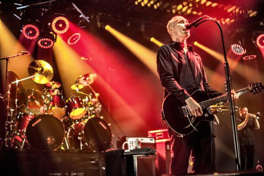 Die Bühne war wieder mit einem schwarzen Tuch verhüllt. Kurz vor 20 Uhr wurde die Menge unruhig und sprang auf die Beine. Da ging es nochmal locker 5 Meter nach vorne, weil der Beginn des Konzertes in der Luft lag. Und so war es auch. Die ersten Töne von „Was die Welt jetzt braucht“ erklangen – und das schwarze Tuch fiel. Und damit war nicht nur der Blick auf die 12 Musiker, sondern auch meine Gefühlswelt völlig freigelegt. Von jetzt auf gleich bekam ich Gänsehaut und freute mich genau da zu sein, wo Mädels vor mir hysterisch auf und ab hüpften, weil es nun los ging. Ich denke das war ihr erstes Konzert mit FURT. Sehr schön anzusehen. Doch nicht nur einzelne Personen wurden vom Farin Urlaub´schen Charme angesteckt. Es dauerte nicht lange, bis die ganze Halle hüpfte, klatschte, tanzte und feierte und selbst die Ränge pfiffen auf ihre Sitzplätze und tanzen im Stehen auf die Klänge des Racing Teams. Schlagzeug, Gitarre, Bass, Bläser, bezaubernder Gesang – alles da was das Musikerherz, Ohr und Auge benötigt. Die Backgroundsängerinnen „Die Nattern“ begeistern nicht nur durch erstklassigen Gesang, sondern auch durch eine immerwährende Performance, ob die Scheinwerfer nun gerade auf sie gerichtet waren oder nicht. Das ganze Bühnenteam vermittelte Freude und Spaß, flapsige Scherze zwischen „Chef“ Farin Urlaub und seiner Crew ließen spüren, dass die gute Laune echt zu sein schien.
