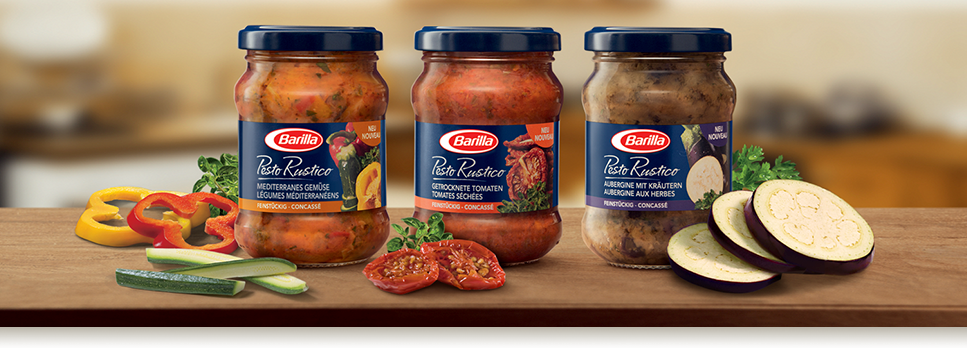 Hierbei handelt es sich um Pesto Rustico von Barilla: eine Komposition aus fein geschnittenem Gemüse und italienischen Kräutern, wie frisch zubereitet. Pesto Rustico ist in den drei köstlichen Sorten erhältlich: Mediterranes Gemüse, Getrocknete Tomaten & Aubergine mit Kräutern.