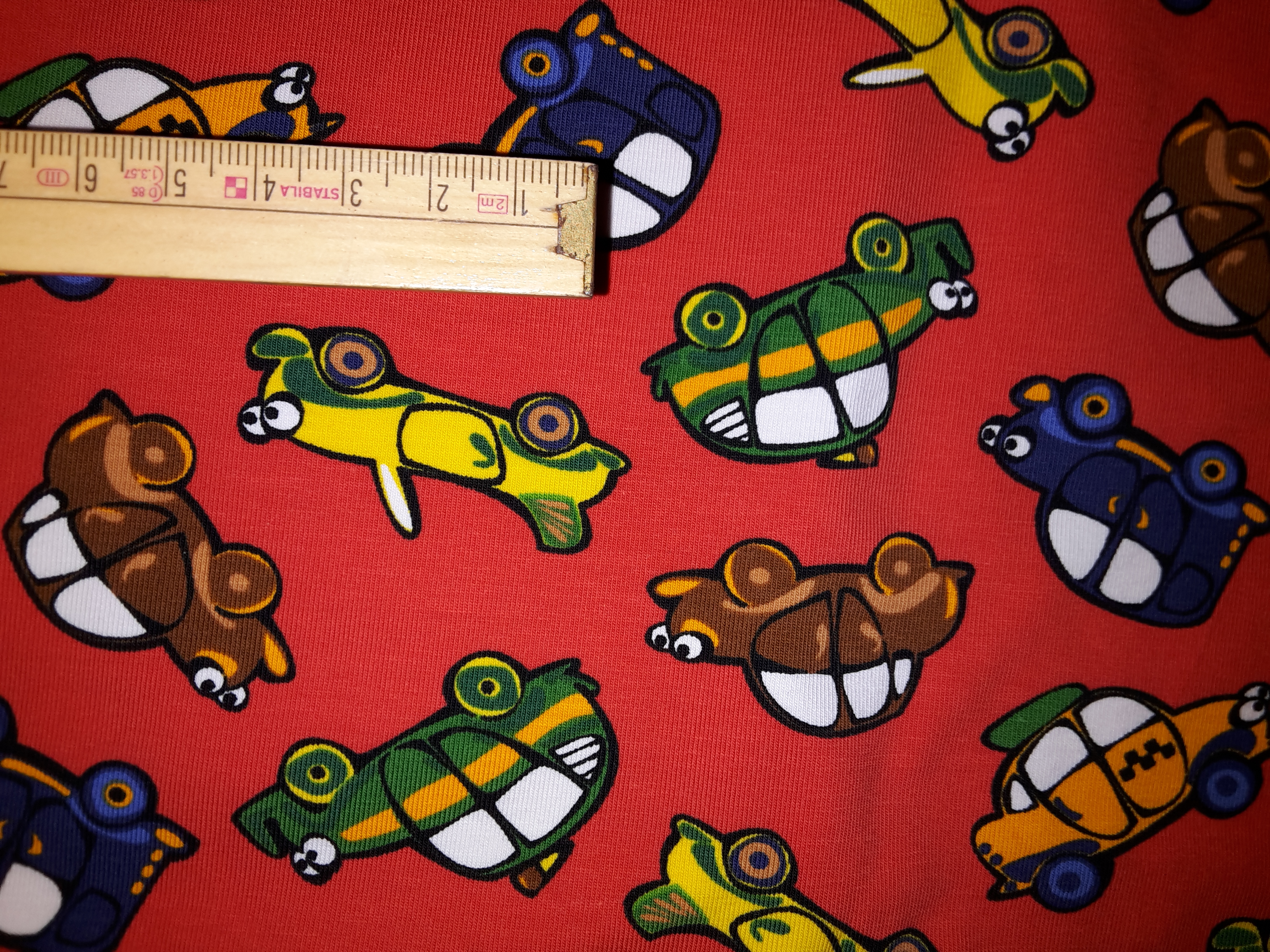 Der Stoff liegt auf 140 cm Breite. Davon sind noch ca. 42 cm übrig. Ungefähr 35 cm gibt es noch in 100 cm Breite, sowie zusätzlich einen kleinen Rest, wie auf dem Bild zu erkennen.