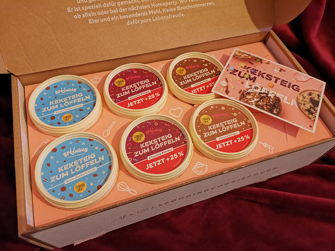 Keksteig zum Löffeln? Ich war da ja eher skeptisch. Natürlich mag ich den Geschmack, wenn ich selbst backe und Teig in der Schüssel übrig bleibt. Das geht schon mit Kindheitserinnerungen los, als ich mit der großen Teigschüssel zwischen den Beinen und dem Rührlöffel in der Hand auf dem Küchenboden saß. Aber Teig kaufen, um ihn zu löffeln?
