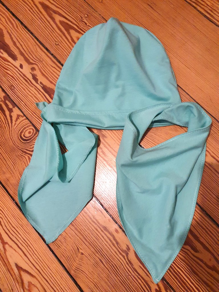 Und dem kann ich zustimmen, es war wirklich schnell genäht, obwohl ich ja direkt drei davon gemacht habe. Daraufhin war immer noch Stoff übrig, den ich noch zu einer Mütze und zwei Hundehalstüchern verarbeitet habe.