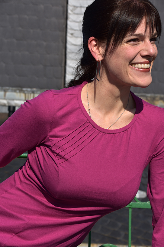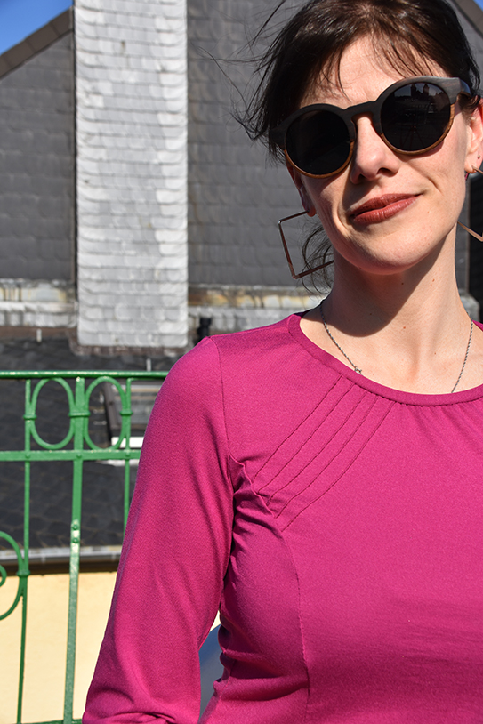 Ich zeige euch heute meine Lea! Wer Fina kennt, weiß, dass sie einfach auf Biesen steht. Ich habe da ja immer ein wenig Respekt, möchte ich sie doch möglichst gleichmäßig und parallel haben. Doch bei Lea lief es einfach. Mit den Biesen bin ich sehr zufrieden, außerdem hat endlich mal das Säumen mit der Zwillingsnadel funktioniert (das ist manchmal ein Kampf, sodass ich es oft erst gar nicht ausprobiere – aber hat halt auch immer so einen professionellen Touch). Genäht habe ich die Größe 36 ohne Änderungen.
