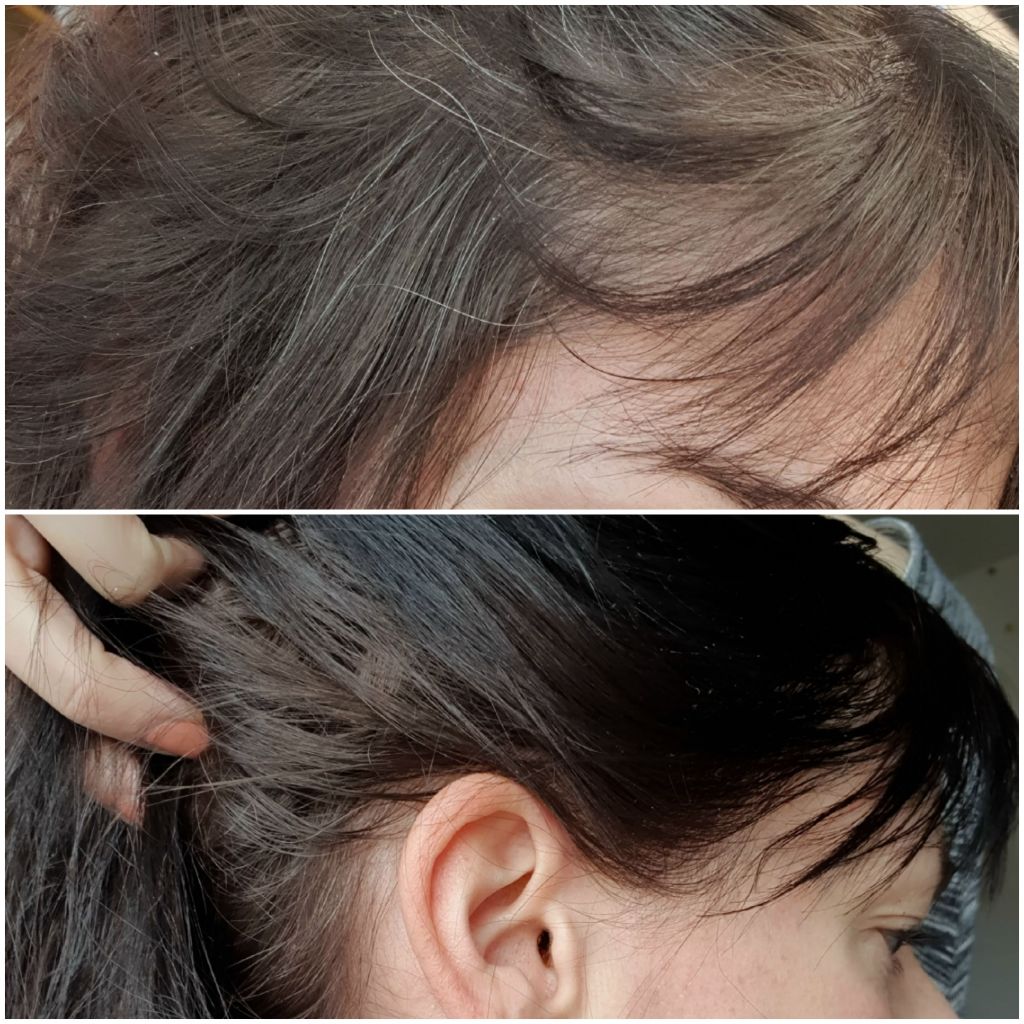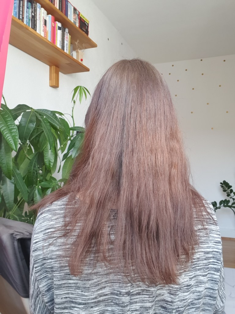 Da mich durch Corona und Homeoffice gerade ohnehin niemand sieht, habe ich meine Haare sich selbst überlassen. Ob graue Strähnen oder nicht, wen interessiert es? Doch durch den Produkttest habe ich mich nun doch mal wieder ein bisschen hübsch gemacht. Jedoch sind meine Haare so lang geworden, dass das alleine echt ein Kampf war. Leider ist es dadurch etwas scheckig geworden, wofür die Farbe aber nichts kann. Eventuell hätte ich auch lieber zwei Packungen verarbeiten sollen. Ist einfach noch neu für mich, so lange Haare zu haben. Die Farbe deckt jedoch gut, die grauen Haare sind verschwunden.
