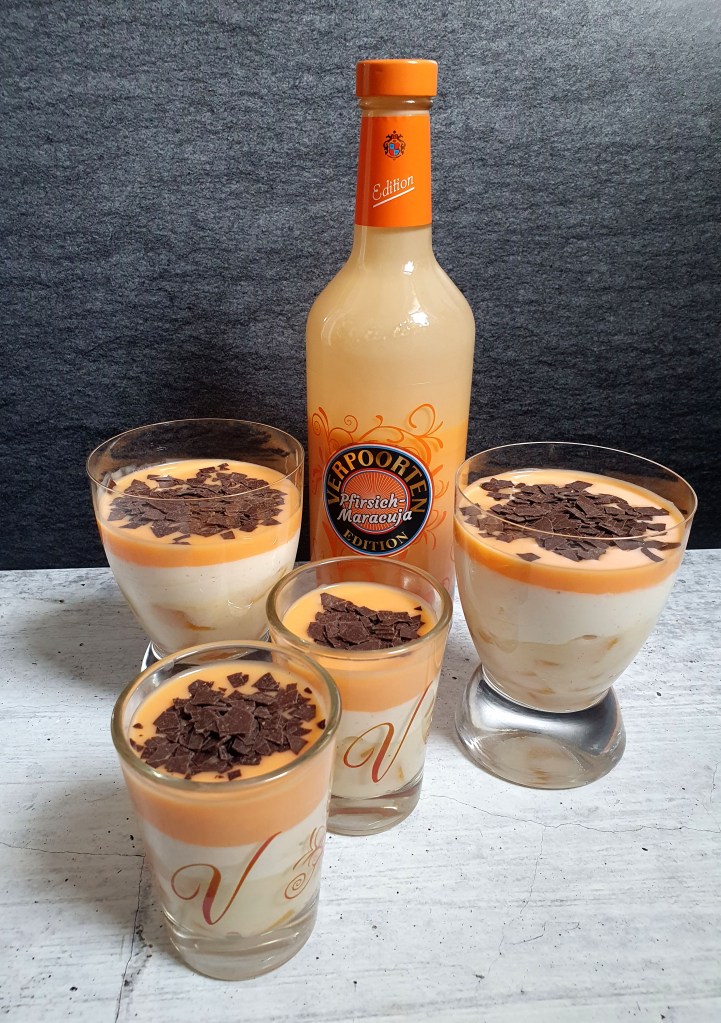 Ich durfte den Pfirsich-Maracuja-Eierlikör von Verpoorten testen und finde ihn bereits pur und auf Eis superlecker! Habe mir aber auch noch ein Rezept für euch einfallen lassen, denn Nachtisch geht doch immer oder?