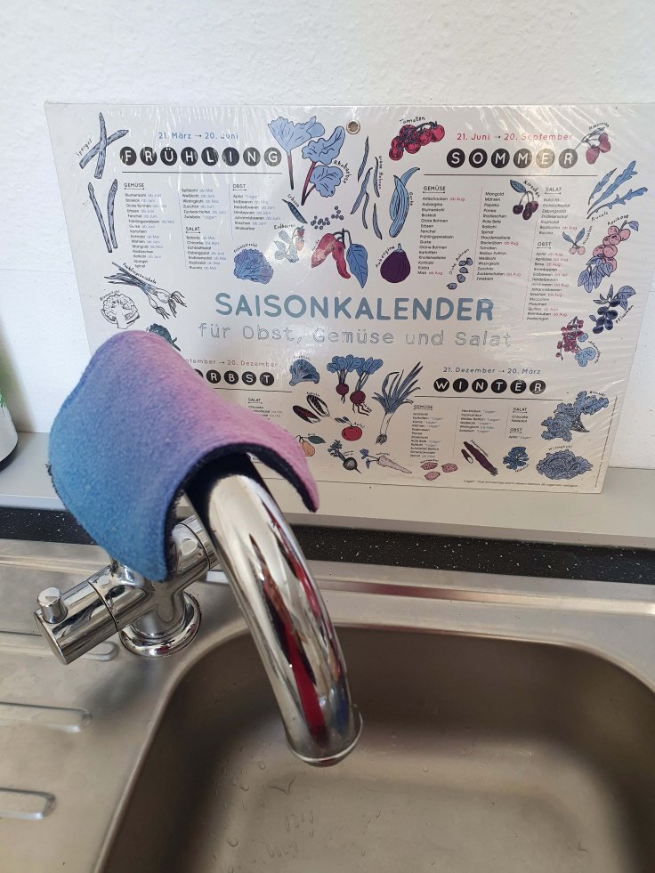 Im Vergleich zu den gelben sind die selbst genähten viel besser und seither wische ich meinen Herd und den Esstisch immer gleich ab, vor allem die Frotteeseite nimmt den Schmutz super auf. Insofern würde ich schon sagen, dass die Hausarbeit mehr „Spaß“ macht.