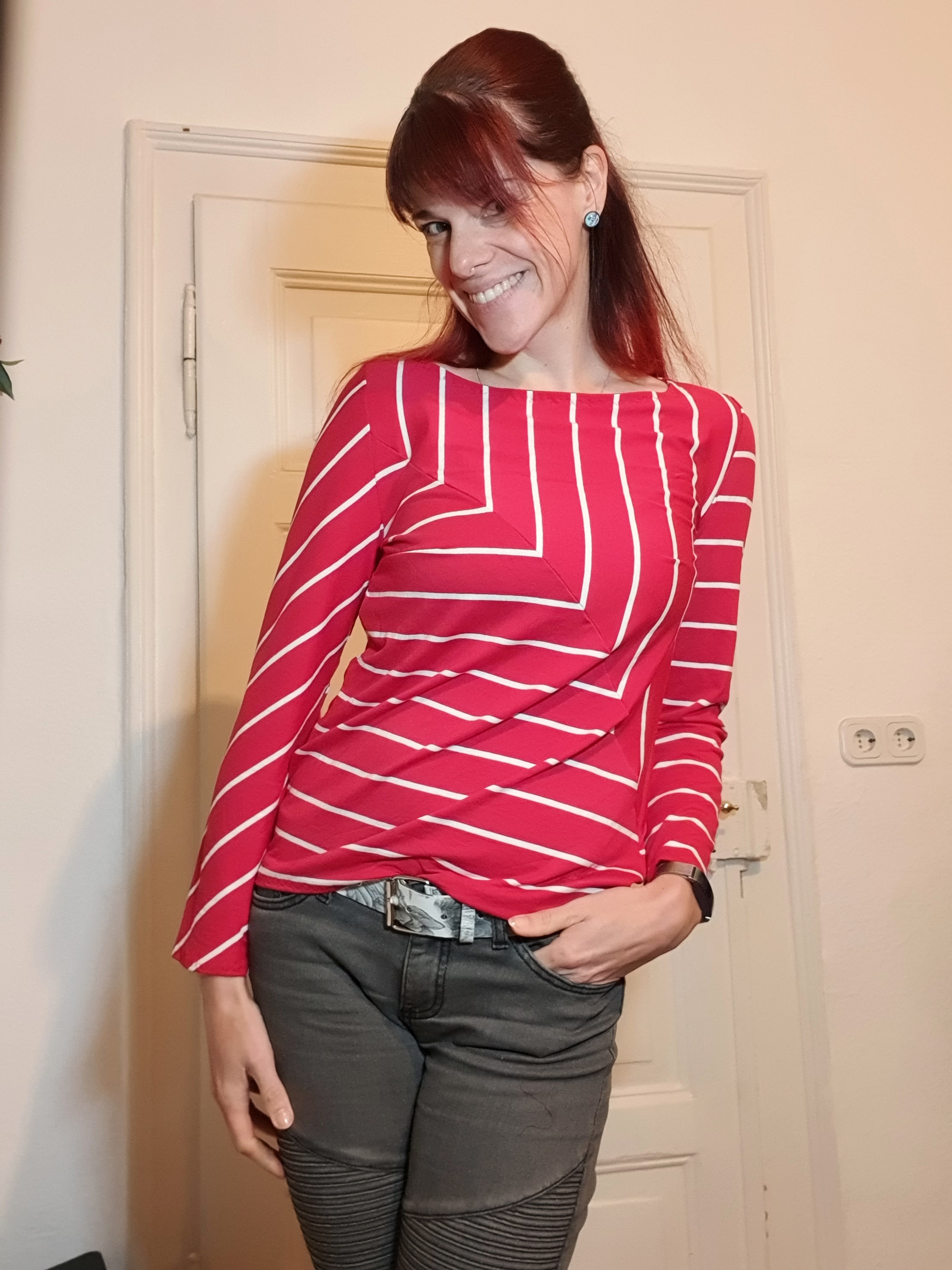 Yeah, mal wieder eine wundervolle Streifenliebe von FinasIdeen ! (Leider) habe ich sie nicht für mich, sondern für meine Freundin genäht. In der Nachtschicht fertig gestellt, damit ich sie schnell verschenken konnte. Hätte sie ihr nicht gefallen oder gepasst, hätte ich sie auch behalten… hätte mir defintiv auch gut gefallen, aber ich verschenke generell nur Sachen, die ich auch gut finde.